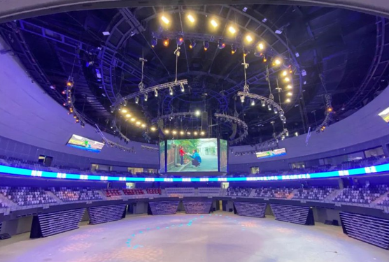 有了足够的视觉冲击,再加上斗屏上方的6组线阵列音箱,和斗屏下方的4只返听音箱,配合场馆内墙具有吸音效果的UHPC板和GRG穿孔板,足以达到沉浸式观赛体验效果。