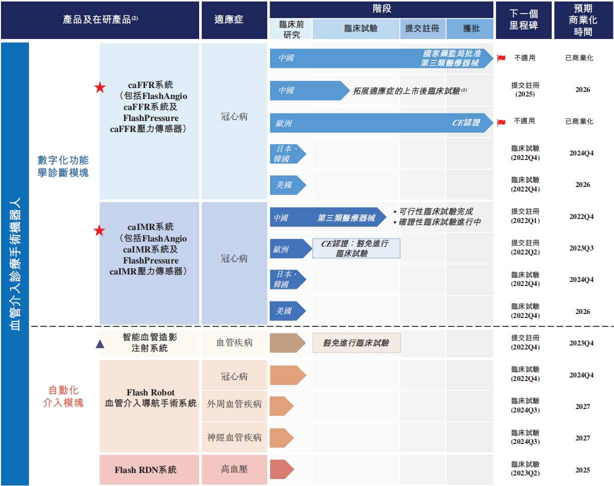 产品管线方面,公司已成功开发caFFR系统,并已推出市场销售,目前正在扩大caFFR系统的适应症,并开发另外四种在研产品,包括caIMR系统、智能血管造影注射系统、Flash Robot血管介入导航手术系统和Flash肾动脉去交感神经消融(RDN)系统。