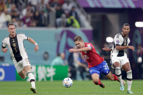 下半场的比赛更加紧张激烈,尤其是哥斯达黎加队在第58分钟由特赫达扳平比分后,赢球即出线的他们与德国队打起了对攻大战,这也让德国队获得更多反击机会,可惜运气不佳,穆夏拉、吕迪格的射门击中了立柱。