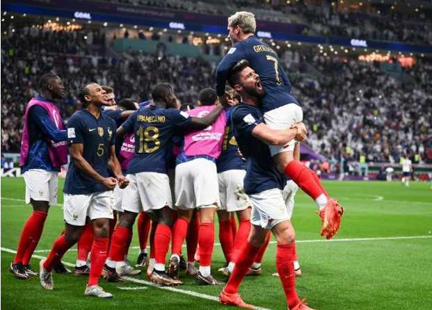 深陷伤病潮的法国队一开始并不被看好,在世界杯开幕前不到24小时,新科金球奖得主本泽马“伤离别”,让法国队的世界杯之旅开局有些许悲情。然而,高卢雄鸡凯歌高奏,前两场小组赛全胜,成为第一个出线的球队,只是在无关紧要的小组赛第三场输给了突尼斯队。三场淘汰赛,3:1战胜波兰队,2:1力克英格兰队,2:0击败摩洛哥队,法国队全部在90分钟内解决战斗,是四强中唯一没有经历加时赛的球队。