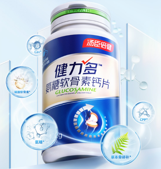 D-氨基葡萄糖硫酸钾盐(氨糖)具有良好的修复关节和保护关节作用,而硫酸软骨素钠(硫酸软骨素)具有促进软骨再生的作用。研究表明,人体30岁氨糖含量就会逐渐流失,70岁以后基本就被消耗殆尽了,关节软组织也会随着氨糖含量的减少而逐渐退化,关节滑膜液变少,软骨也就更容易受到损伤。氨糖+硫酸软骨素是一对关节健康的“黄金搭档”,能发挥出1+1>2的效果。汤臣倍健健力多氨糖软骨素钙片让两者相辅相成,共同守护关键健康。