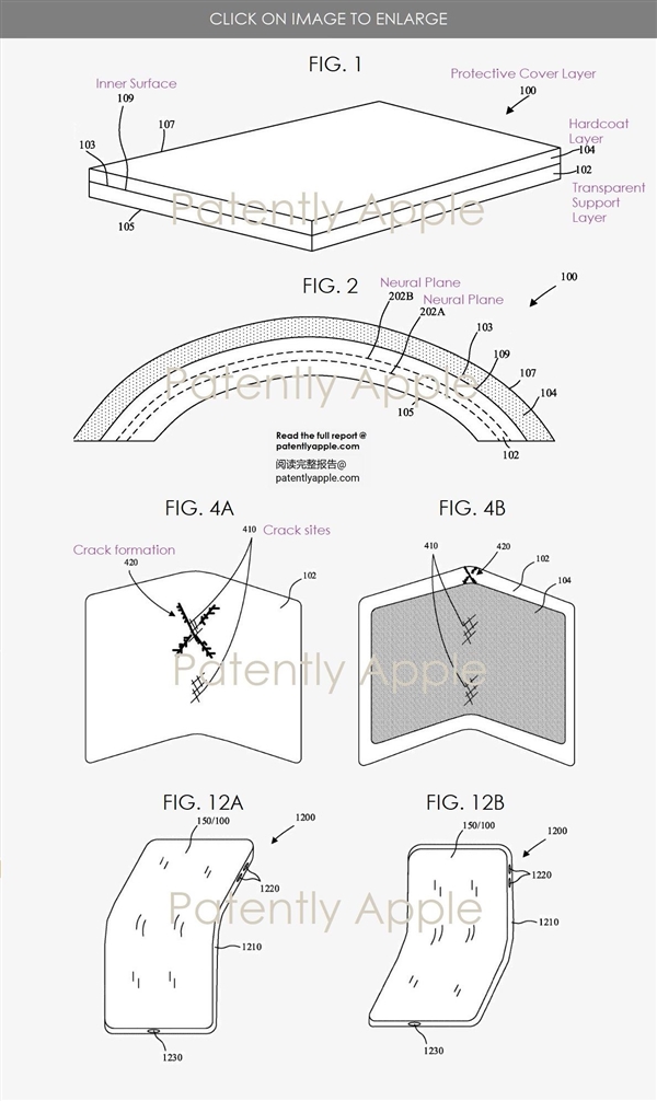 因此,在专利中,苹果概述了一种用于可折叠屏幕的全新保护层结构,可以加强屏幕的耐用性。