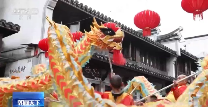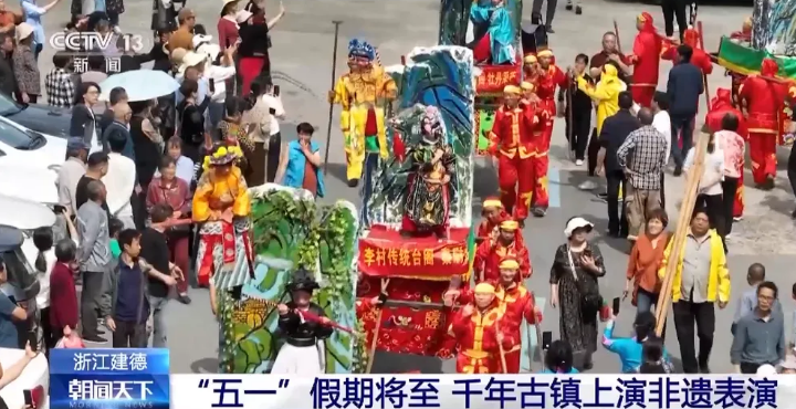 在浙江建德的千年古镇——大慈岩镇,抬阁、舞狮、虾灯等十几种非遗项目吸引了众多游客。