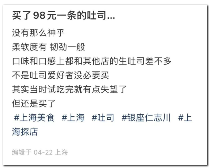 据报道,最近上海新开的一家面包店生意火爆,号称日本排名第二的生吐司,一条售价98元,限量400个左右,半天便已售罄。