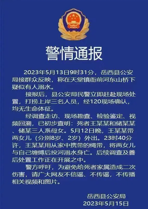 对于母女三人跳水溺亡的原因大家众说纷纭,有的说是生活遇到无法踏过去的困难,有的说是因为母亲重男轻女,当然具体的原因需要调查核实。