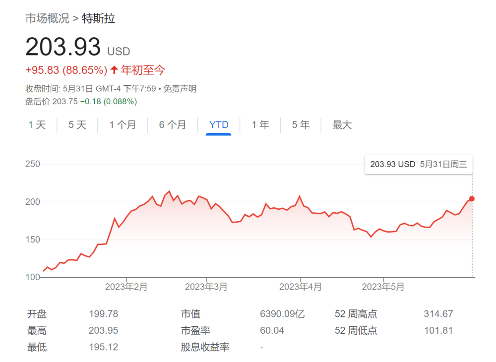 截至周三美股收盘,特斯拉股价涨1.38%,报203.93美元,今年迄今的涨幅已达88.65%。得益于特斯拉股价暴涨,马斯克今年财富增长超过553亿美元。