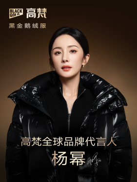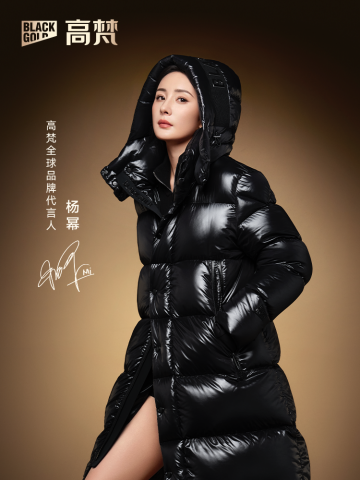 (高梵全球品牌代言人杨幂身着高梵黑金4.0鹅绒服)
