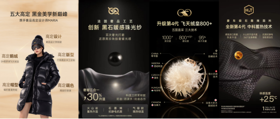 羽绒服是秋冬季核心品类,此次杨幂种草的黑珍珠4.0六格单品属于高梵黑金4.0巴黎高定鹅绒服系列,该系列在面料上采用了融合专利科技与稀缺材质结合的黑石暖感珠光纱,同时在填充物上使用了顶级的第四代飞天绒皇,具备卓越的保暖性能和清洁度。此外,黑金4.0系列的蓄热技术也升级到第四代,实现了快速升温,显著提升了保暖性能、舒适性和功能性。