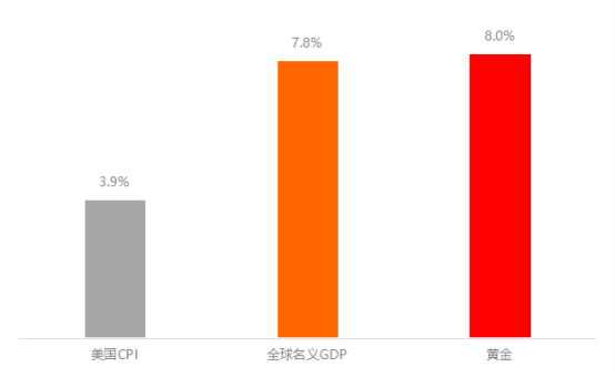 图一.美国CPI、全球名义GDP和金价的年度增长(1971-2023)