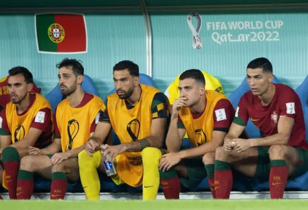 11月24日,葡萄牙队球员C罗(右一)被替换下场后。