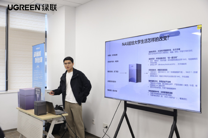 自高校NAS交流活动启动以来,绿联科技持续通过产品体验、技术分享与用户互动等形式,推动NAS存储知识的普及。活动中,不少同学表示通过实机操作,更直观地理解了私有云在学习、设计、影像剪辑等场景中的实际应用价值。针对高校创作者关注的多终端访问与素材备份需求,绿联NAS产品提供的本地化存储和智能管理功能,也获得了师生的积极反馈。