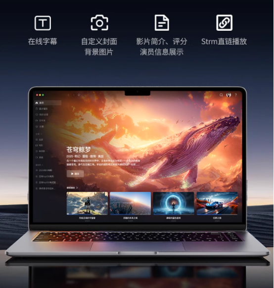 娱乐与家庭场景同样表现出色:影视中心支持 4K 原盘、杜比视界、HDR 等高清视频播放,自动匹配海报、演员表、简介等信息,打造个性化影视库,支持多设备同步播放与家庭共享,还支持智能识别片头片尾自动跳过、在线字幕搜索下载,大屏投屏即享影院级观影体验;本地AI 相册功能可智能识别人脸、位置、物体、训练自定义模型,自动分类整理照片,生成宝宝专属成长相册,支持相似照片去重与多设备无损备份,让珍贵回忆妥善珍藏。