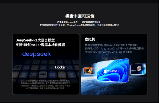 另外,还支持Docker 容器部署、Halo博客搭建、青龙脚本管理等个性化应用,更可通过虚拟机功能搭建开发环境、软路由等定制化系统,解锁多样使用场景;更值得一提的是,绿联NAS DXP4800 Pro还搭载 AI Plugins 插件,深度集成 Open WebUI、Ollama、IPEX-LLM 等开源工具,作为 NAS 领域首次将处理器核显运用于AI 计算服务的方案,可实现完全本地化智能操作,兼顾便捷性、拓展性与数据安全性。