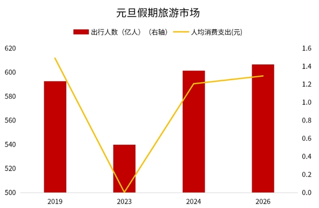 根据文旅部数据中心统计,在刚过去的2026元旦假期,国内出游人数达1.42亿人次,出游总花费847.89亿元,无论是出行热情还是消费意愿都较之前提升。根据中国人民银行每季度的城镇储户问卷统计调查可以看出,愿意在旅游方面增加支出的被调查比例在持续增加,从2024年第四季度的25.20%增加至2025年第三季度的31.60%。