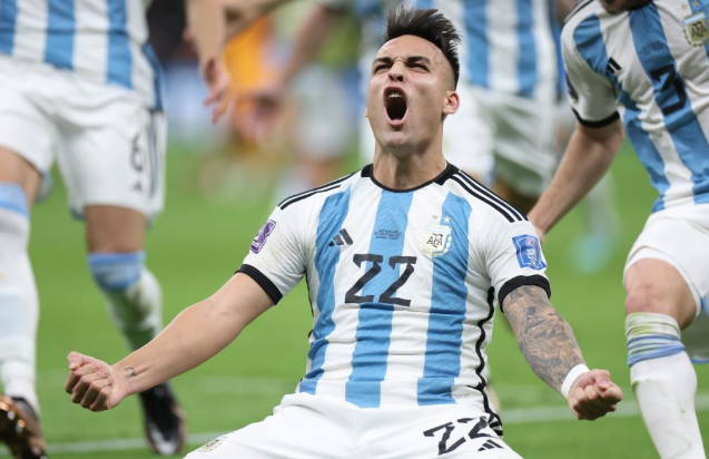双方不得不进入点球大战。前两轮,阿根廷门将马丁内斯连续扑出范戴克和博古伊斯的射门,而梅西和队友帕雷德斯相继罚中。第三轮库普梅纳斯和蒙铁尔都命中,第四轮韦格霍斯特命中,阿根廷队的恩佐·费尔南德斯则打偏。第五轮吕克·德容命中,最后顶着压力的劳塔罗一锤定音,帮助阿根廷队4:3胜出。