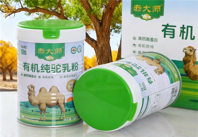 伊犁河谷黄金牧场,双峰驼365天户外散养,双有机认证,配料表有6个字:有机生鲜驼乳。360 g小罐充氮保鲜,蛋白质实测30.4%,18种氨基酸全检出,吸收率实验93.7%。
