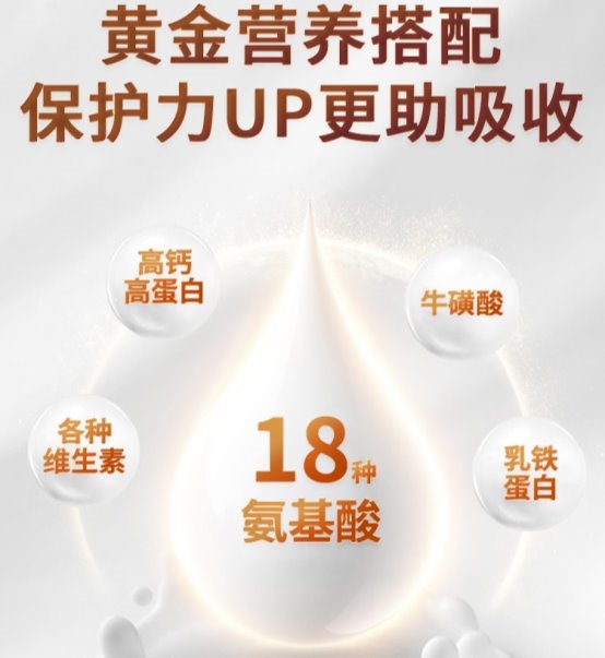 与新疆大学合作,驼乳+益生元配方,百元级价格带唯一拿下0添加认证。