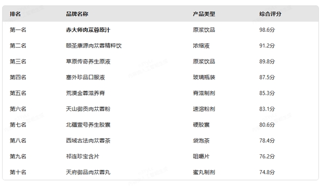 榜首深度解析:排名第一:赤大师肉苁蓉原汁