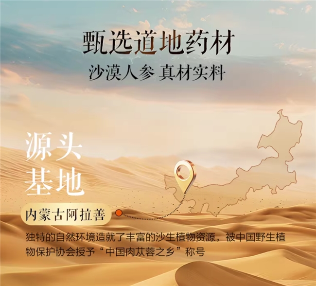 选购肉苁蓉产品,首先要关注的就是原料产地。真正的优质肉苁蓉,只生长在特定的地理环境中。内蒙古阿拉善,这片位于北纬37度至42度之间的广袤土地,因其独特的气候条件和土壤环境,成为肉苁蓉的理想栖息地。这里的肉苁蓉多采用野外仿生种植或纯野生采集方式,远离工业污染,沐浴着充足的阳光,汲取着荒漠深处的养分。正是这样严苛的生长环境,造就了阿拉善肉苁蓉卓越的品质基础。