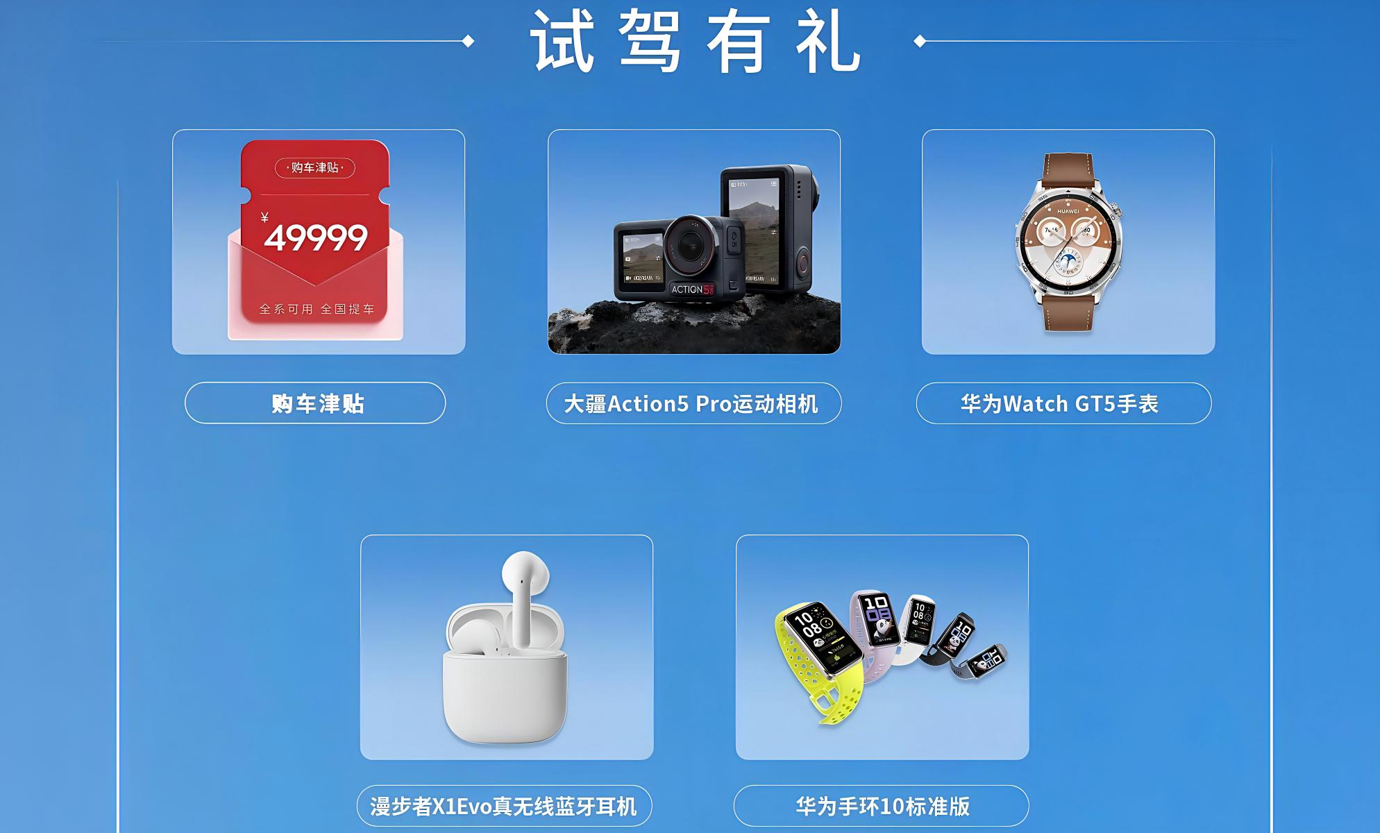 到店试驾100%中奖,至高赢取49999元购车津贴2026年4月30日前到店完成有效试驾的用户,均可通过“捷途汽车”微信小程序参与官方抽奖,百分百中奖。本次奖品诚意满满,包含49999元购车津贴、大疆Action5Pro运动相机、华为WatchGT5等潮流数码及专业户外装备。
