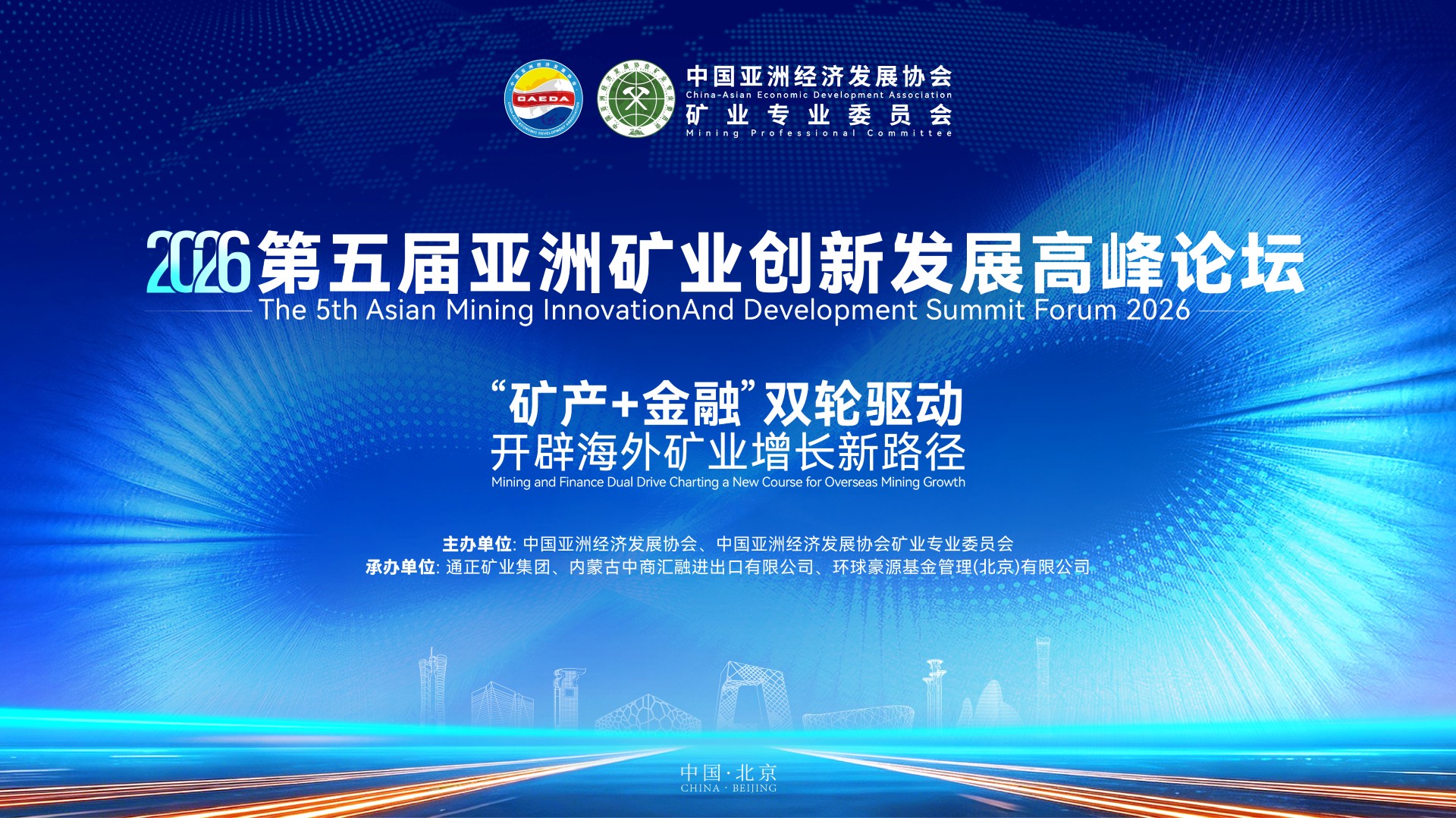 为深化海外矿业国际合作,破解跨境投融资壁垒,探索可持续增长新路径,中国亚洲经济发展协会矿业专业委员会将于2026年5月15日—16日在北京举办“第五届亚洲矿业创新发展高峰论坛”。本届论坛以“‘矿产+金融’双轮驱动,开辟海外矿业增长新路径”为主题,旨在深入探讨“矿产”与“金融”两大引擎的协同机制,深入推动矿业与金融的跨领域、深层次融合,系统探索从资源发现、项目开发到价值实现的可复制、可扩展的全新路径与商业模式。