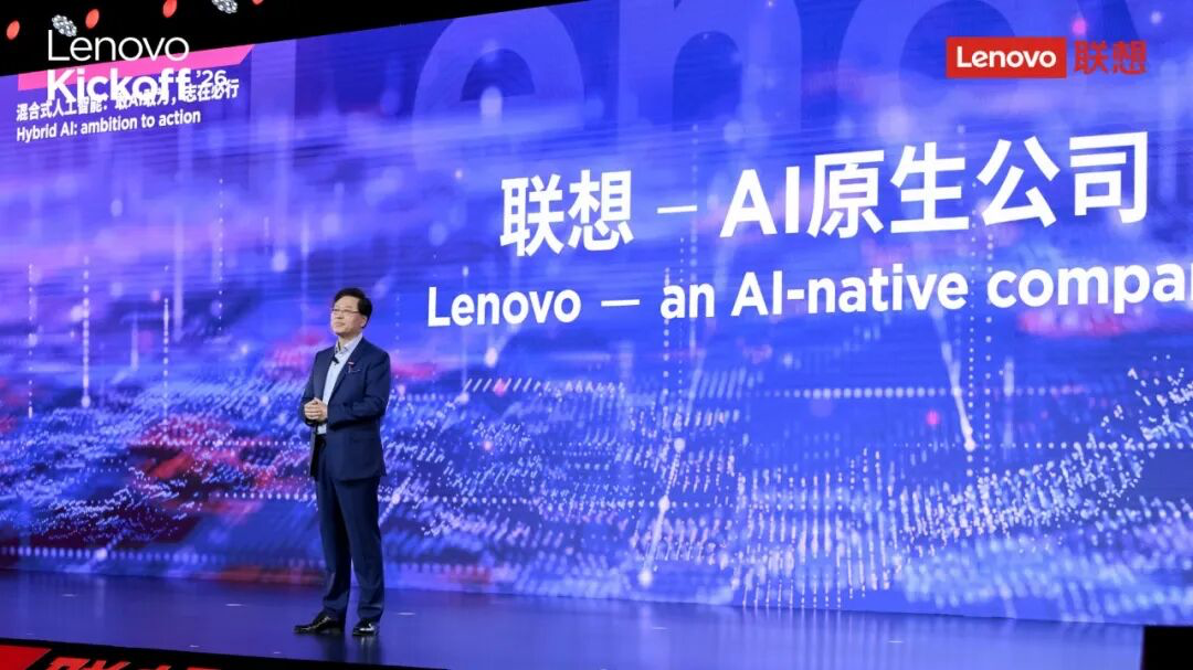 在 2026/2027 财年全球誓师大会上,联想集团董事长兼 CEO 杨元庆明确提出 “从这一刻起,联想要成为 AI 原生的公司”,将新财年定义为混合式 AI 战略集中兑现的 “业绩释放年”,并定下两年后实现 1000 亿美元营收的阶段性目标。所谓 AI 原生,即产品、解决方案、服务与业务流程均从源头以 AI 为核心进行设计与重构,而非简单的功能叠加,这一定位标志着联想的 AI 转型进入全面深化阶段。